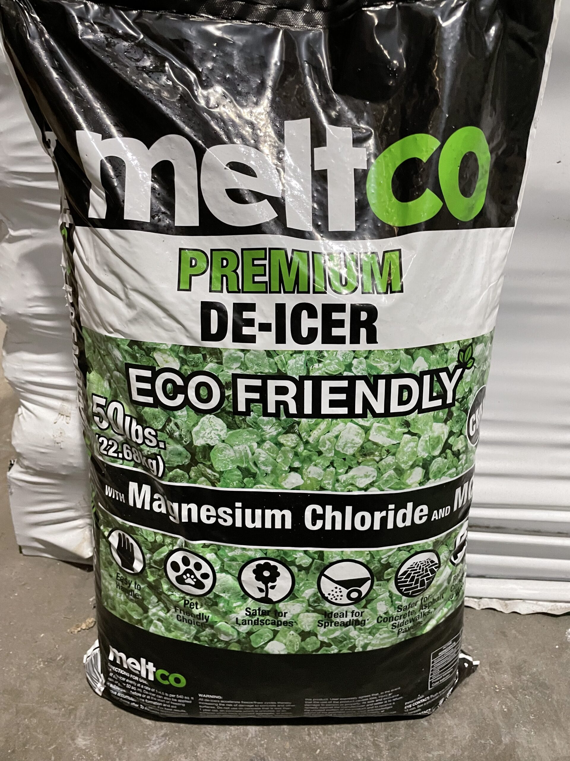 This 100% natural eco-friendly formulation makes meltco™ Premium a very safe and effective de-icer. meltco™ Premium De-icer is a very friendly option for snow and ice melting around children, pets, softscapes, hardscapes, roofs and vegetation. It consists of naturally occurring complex trace minerals and micro nutrients in addition to the chloride family and MCi3. The MCi3 solution is formulated with CMA and organic elements extracted from sea water. Its natural ability along with minerals and micro nutrients buffers the effects of chlorides on vegetation and environment. meltco™ Premium de-icer has no nitrogen or phosphorus added to make it an ideal option for de-icing around any body of water.