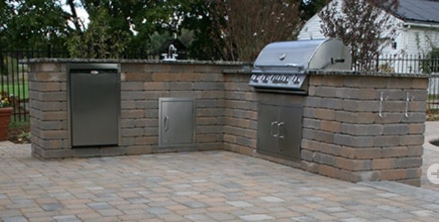 The Verona Kitchen is built with Verona Wall stones. These fade-resistant stones feature a deep, rich color that provides immediate beauty. Homeowners can mix and match different colors to create a unique look for their home using Nicolock products, including patio, retaining wall and pool accent paving stones.