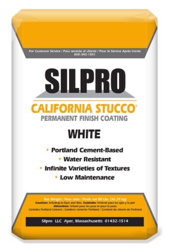 SILPRO CALIFORNIA STUCCO™ is a Portland cement-based, water-resistant coating that is easy to apply and has the ability to withstand severe climatic conditions. It combines a great variety of textures with low maintenance cost in a permanent finish material. Available in white or gray.