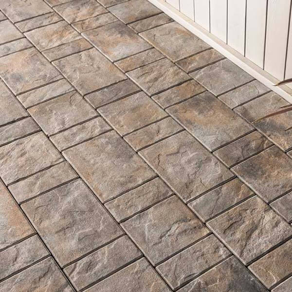 The texture of Treo Premier is similar to Beacon Hill Flagstone, with a refined surface and long-lasting color, but is more diminutive in size. For some smaller size patios and walkways, the smaller scale of Treo Premier may be preferred for its look and the degree to which it reduces the amount of cutting required. Treo Enduracolor is available in a three-stone random bundle and a small rectangle that is useful for borders and banding.